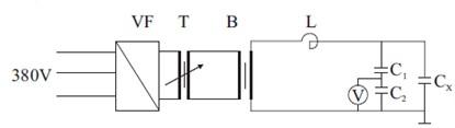 5、合上试验电源,调整变频电源的频率,将试验回路调至谐振,此时调压器置于初始位置。